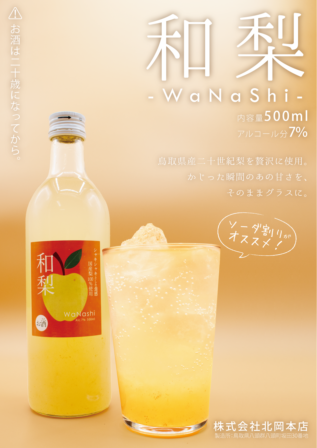 鳥取県産二十世紀梨を贅沢に使用。 酸味と甘味とのバランスが◎シャリシャリとした食感をお楽しみください。ソーダ割りがおすすめ。 ![]()